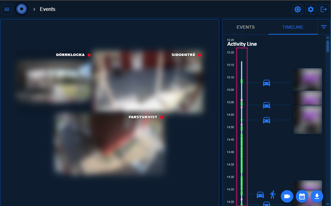 The Activity Line visually represents the activity detected by the cameras over time, helping to quickly identify periods of interest.