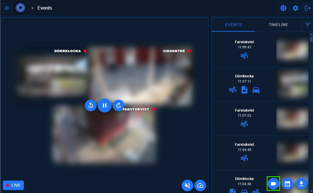 To view event recordings, go to the Events tab on the Events page. Here you can see all events that have been detected and recorded.