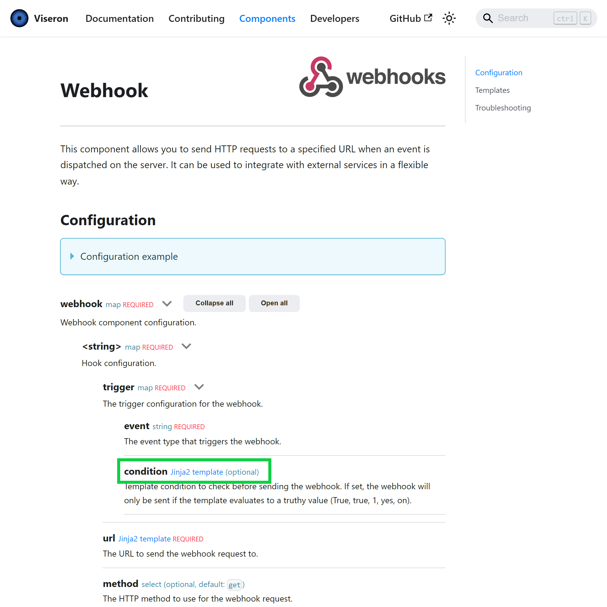 Templating in Viseron is backed by Jinja2, a powerful templating engine for Python. It allows you to create dynamic templates that can be used in the config, currently only the webhook component leverages this functionality.